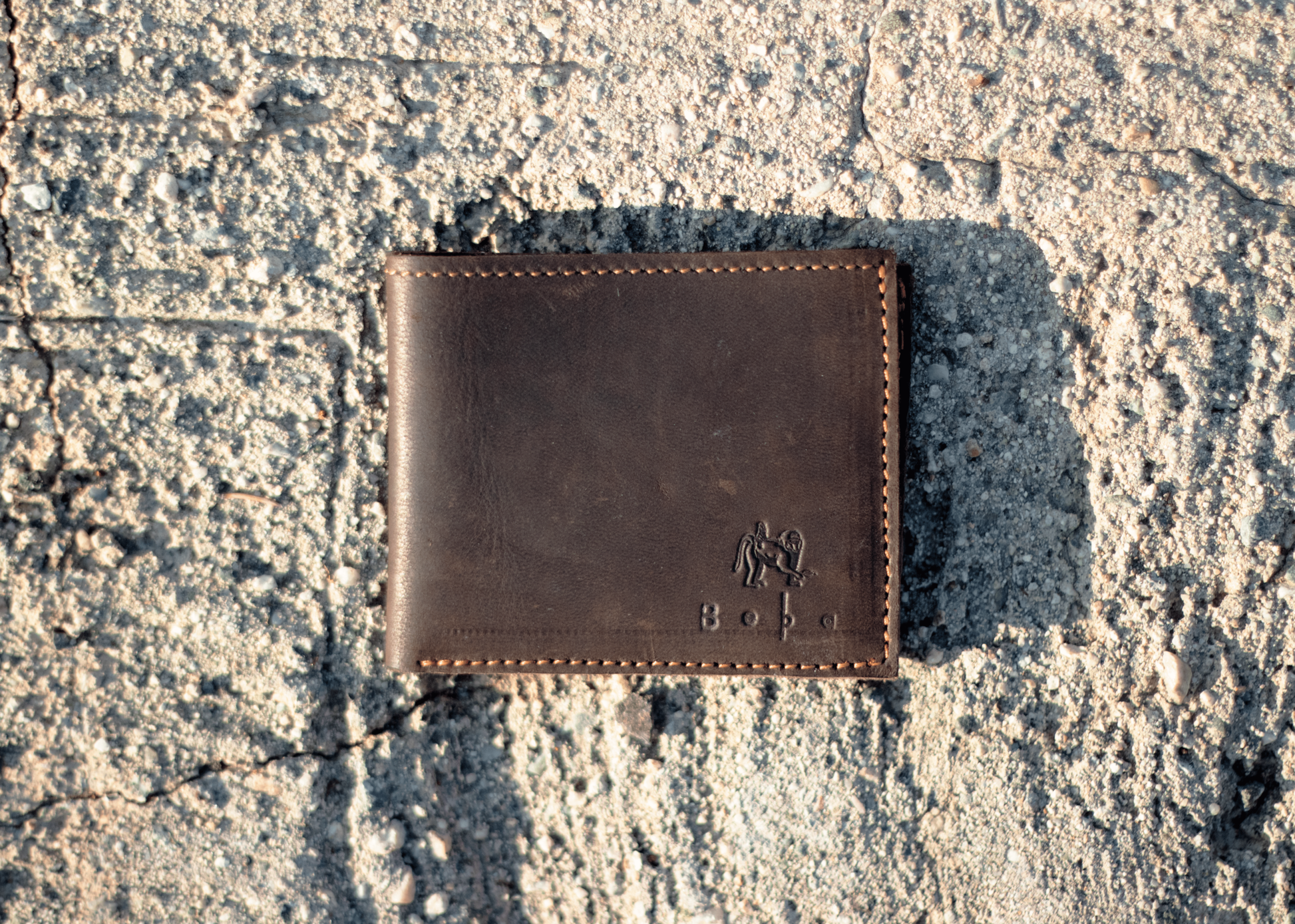 The Mboa Fold Wallet is a rugged leather wallet designed to age with a unique worn finish. Made from our standard Grade One leather, this wallet offers a slim design with ample space for your bills and card. Card slots are snug upon first use, leaving the break-in phase in your hands.
